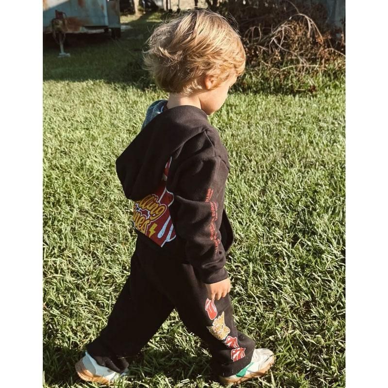 サイドのヴィンテージ風カスレプリントも〜薄手裏起毛もいい感じです。
